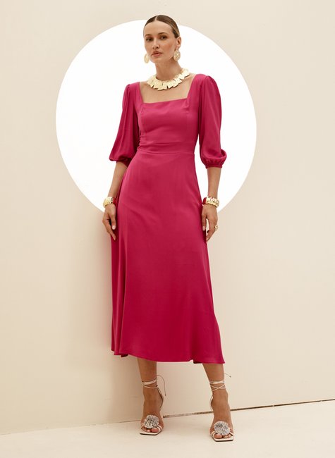 Garanta um visual elegante e sofisticado com o Vestido Feminino Super Midi da DIMY. Confeccionado em 60% poliéster e 40% viscose, possui mangas e é feito em tecido plano de alta qualidade. Ideal para ocasiões especiais. Adquira já o seu!