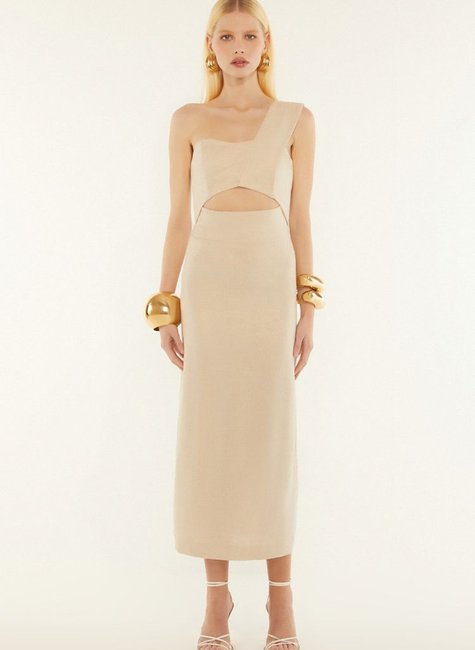 O Vestido Hiper Midi Dimy é feito com 75% viscose e 25% linho, garantindo conforto e elegância. Com design moderno de um ombro só, é a escolha perfeita para quem busca um look feminino e sofisticado. Adquira já o seu e arrase em qualquer ocasião!