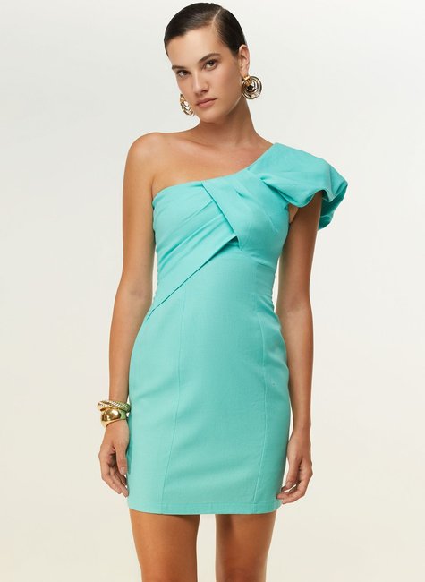 Compre o Vestido Ombro Só Com Pregas Feminino Dimy. Confeccionado com 74% viscose, 17% linho e 9% algodão, o tecido plano proporciona conforto e leveza. Ideal para compor looks elegantes e modernos. Garanta já o seu! Aproveite!